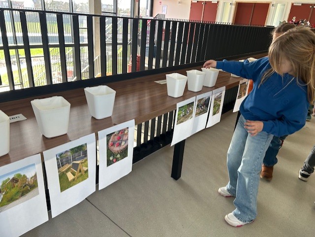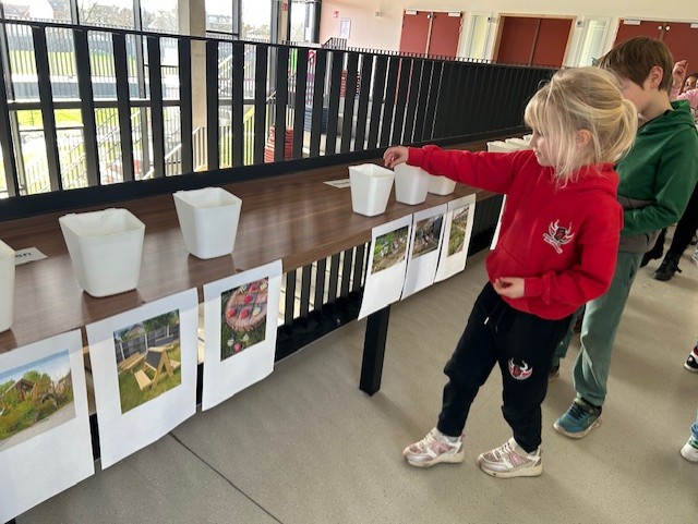 Deze week mochten we ook stemmen voor onze nieuwe speelplaats. De speelplaats van de lagere school wordt volledig omgetoverd in een mooie, speel- en leerrijke groene speelplaats. We maken dan ook allemaal verschillende ‘hoekjes’. De kinderen krijgen uiteraard hierin ook hun inbreng. Per hoekje mochten we een stem uitbrengen bij de foto die ons het meeste aansprak. Uiteraard zullen we hier dan ook rekening mee houden! We kijken er alvast enorm naar uit!