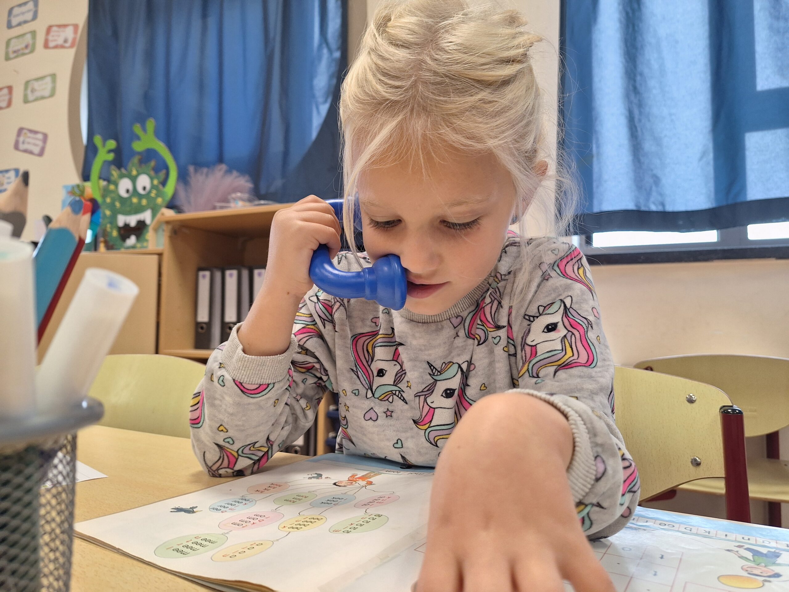 Vandaag was het toch wel een speciale week. Donderdag gingen we naar het CLB waar we allerlei onderzoeken kregen. We werden gemeten en gewogen en onze ogen en oren werden getest. Het spuitje kregen we niet, hiervoor komt de dokter naar school. We hadden onze knuffelbeer mee die toekeek hoe flink we daar waren.