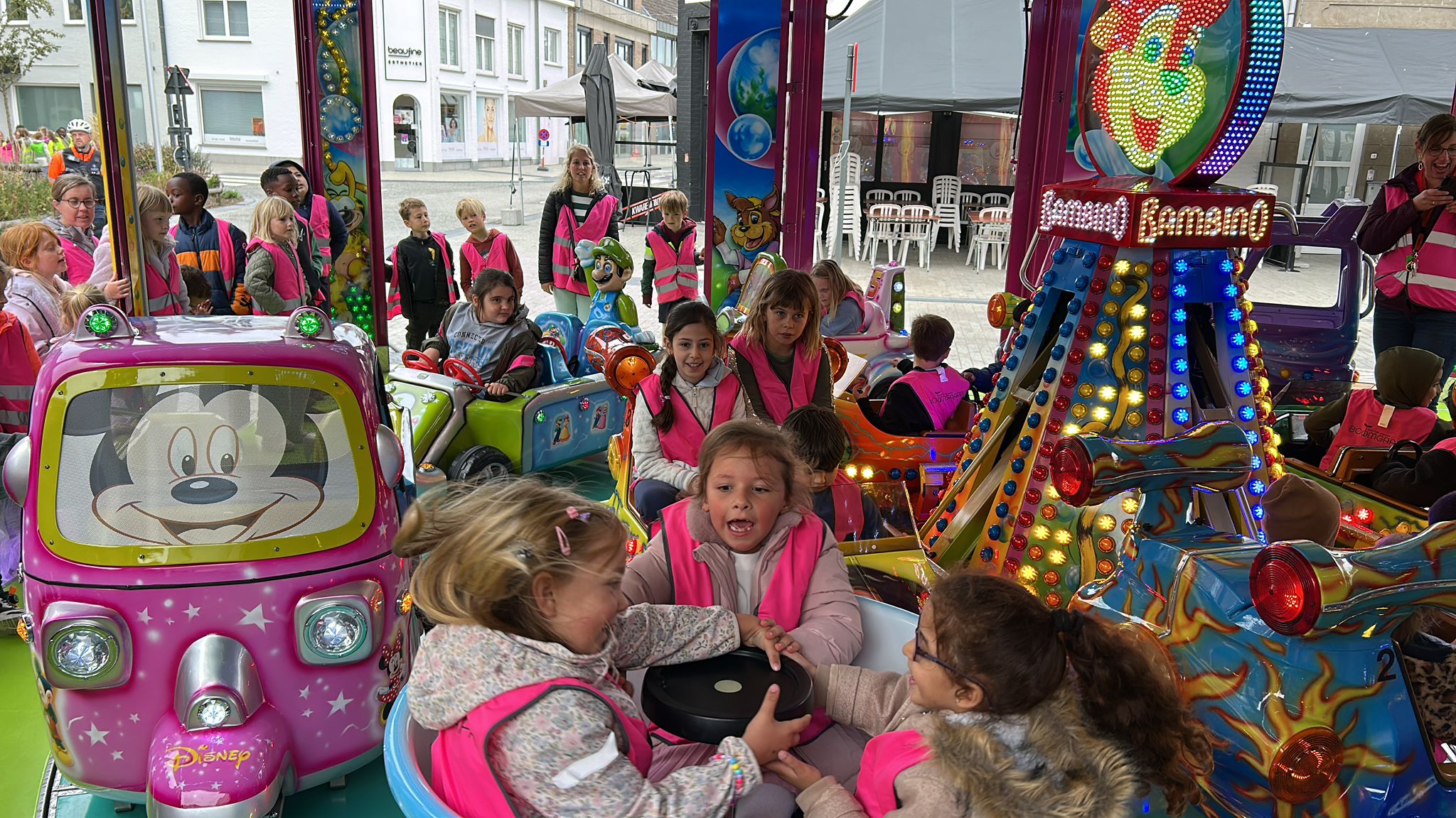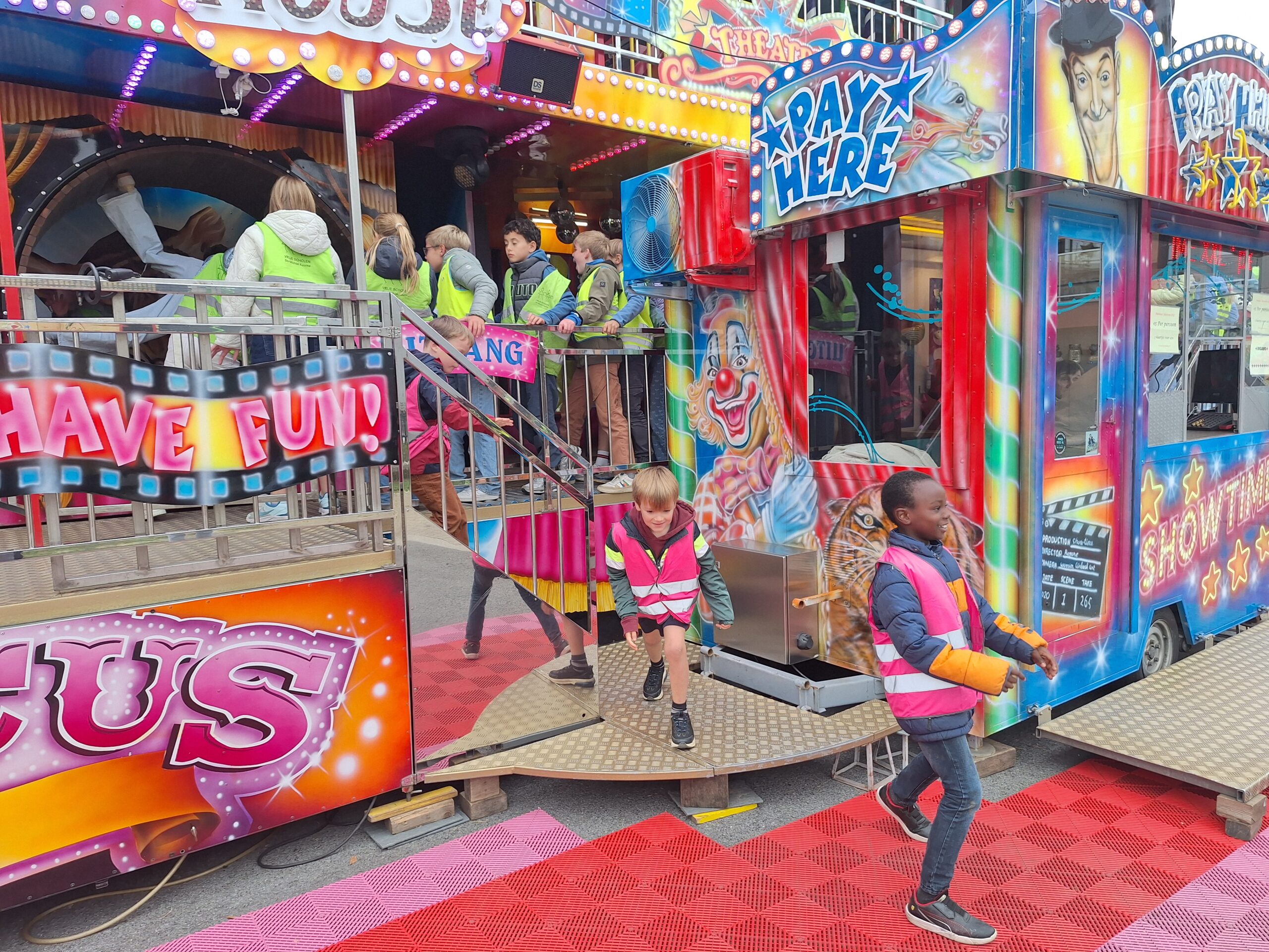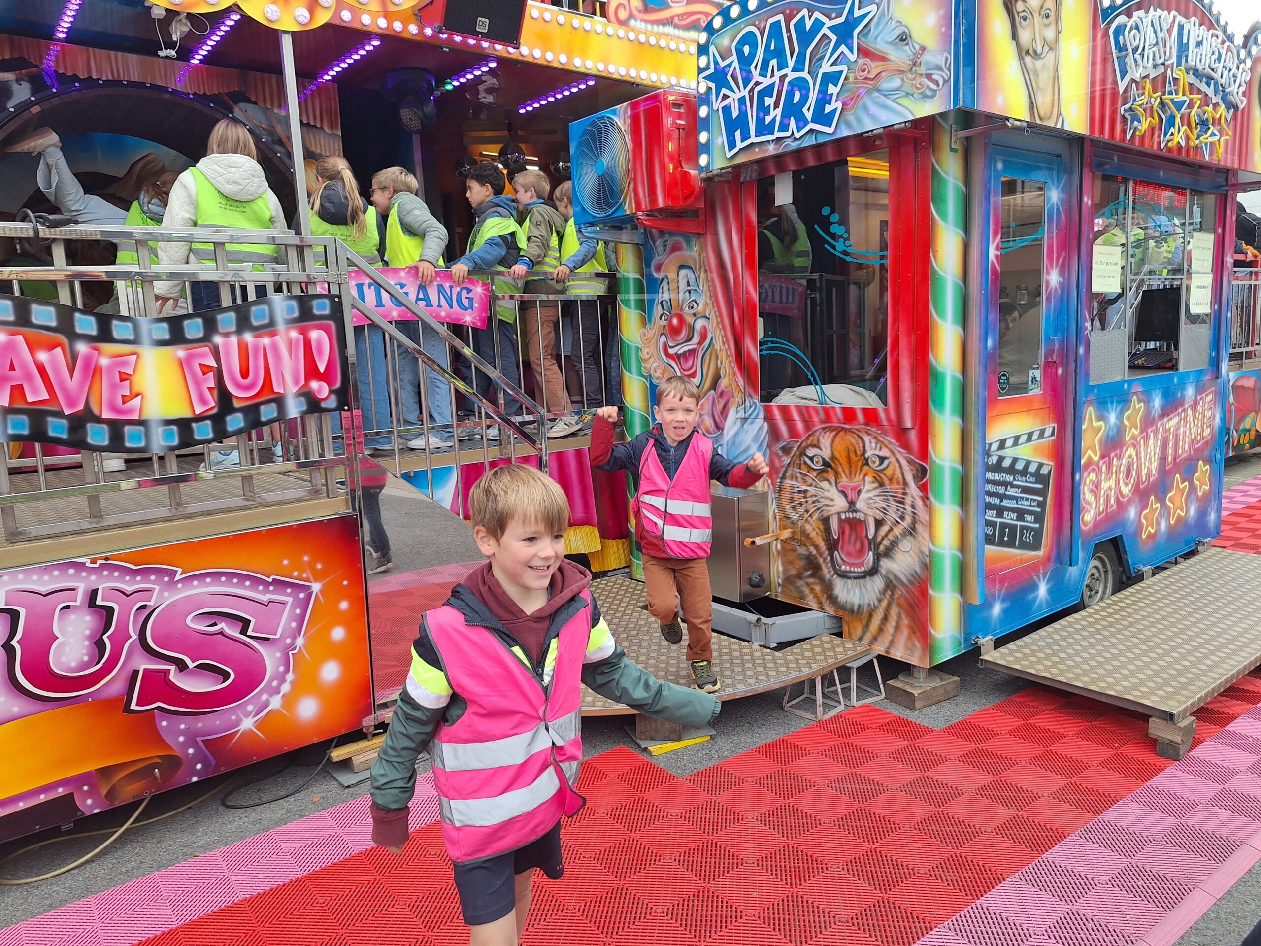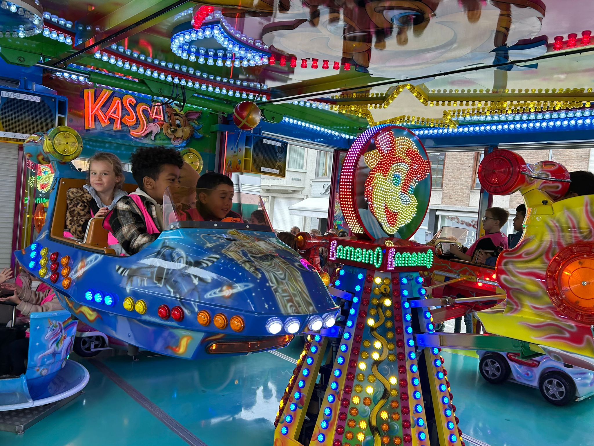 Vrijdagnamiddag gaan we naar de kermis. Een bezoekje aan de draaimolen of op het funhouse kunnen dan ook niet ontbreken. ’s Avonds doen er ook enkele kinderen van onze klas mee aan de ezelsjogging. Twee kilometer lopen is heel wat, maar dit zal zeker met wat aanmoediging lukken!