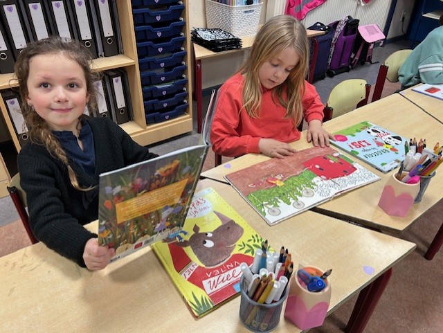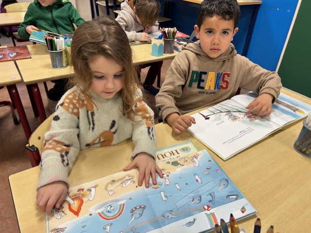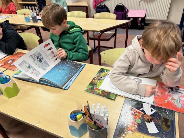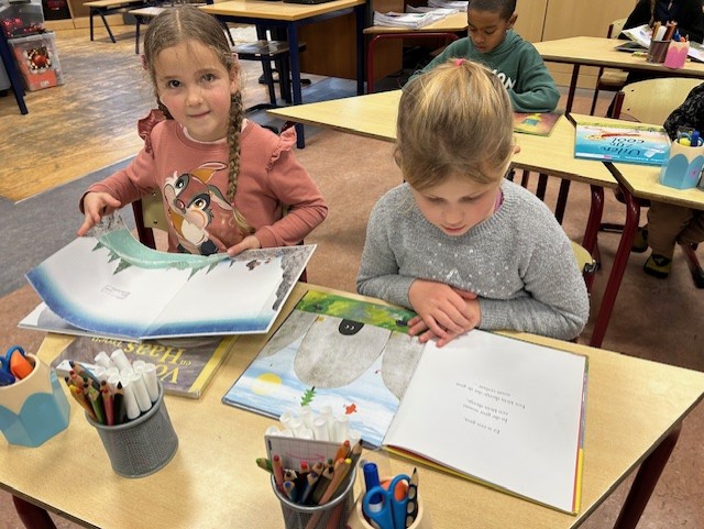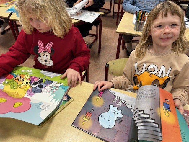 Maandagnamiddag gingen we naar de bibliotheek in Kuurne. We mochten elk twee boekjes kiezen, waar we nu regelmatig mogen in lezen. We kunnen inmiddels al behoorlijk goed lezen want heel wat woordjes zijn gekend. Lezen is heel belangrijk en we proberen dit dan ook op allerhande manieren in te oefenen: samen lezen, duolezen, individueel lezen, via leesspelletjes, enz.