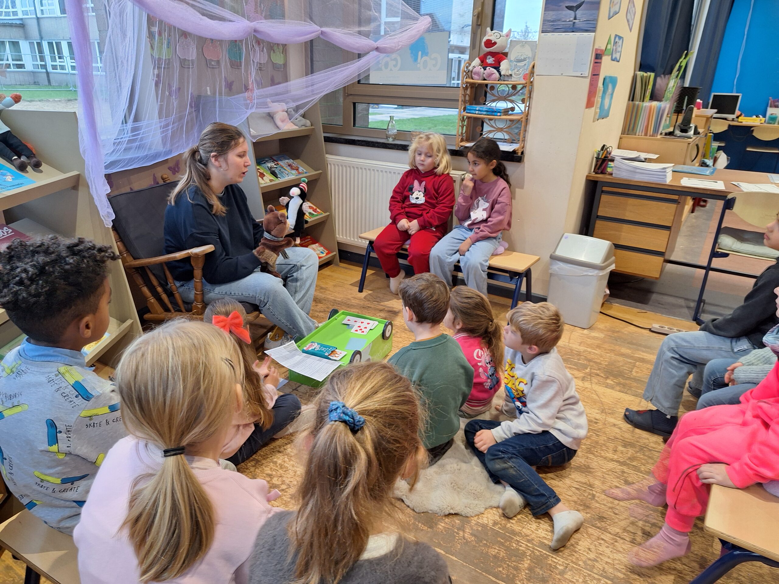 We nemen deze week alweer afscheid van onze stageaire-juf Marthe. Ze was een paar keer voor een dagje op bezoek en hielp toen ook mee in de klas. Nu was ze 2 weken onze juf. Ze heeft het heel goed gedaan, vonden wij allemaal. Ze bracht zelfs haar kikker mee naar de klas. Hij zat in zijn aquarium rustig te beginnen aan zijn winterslaap, terwijl wij leerden. Hij is 15 jaar oud en is een Afrikaanse klauwkikker. We deden veel rond het project ‘kleur’ en het sprookje de Kikkerprins. Vrijdag kan je op ons 1e forum komen kijken en luisteren naar wat wij brengen.