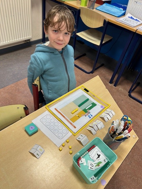De voorbije maanden kregen we heel wat meer inzicht in de getallen en getalfamilies tot 10. Sinds kort zijn we dan ook gestart met de getallen tot 20. Om hier meer inzicht in te krijgen maken we gebruik van allerhande materialen. We zijn ervan overtuigd dat hoe meer de kinderen handelen, hoe beter ze dit zullen begrijpen en kunnen toepassen.