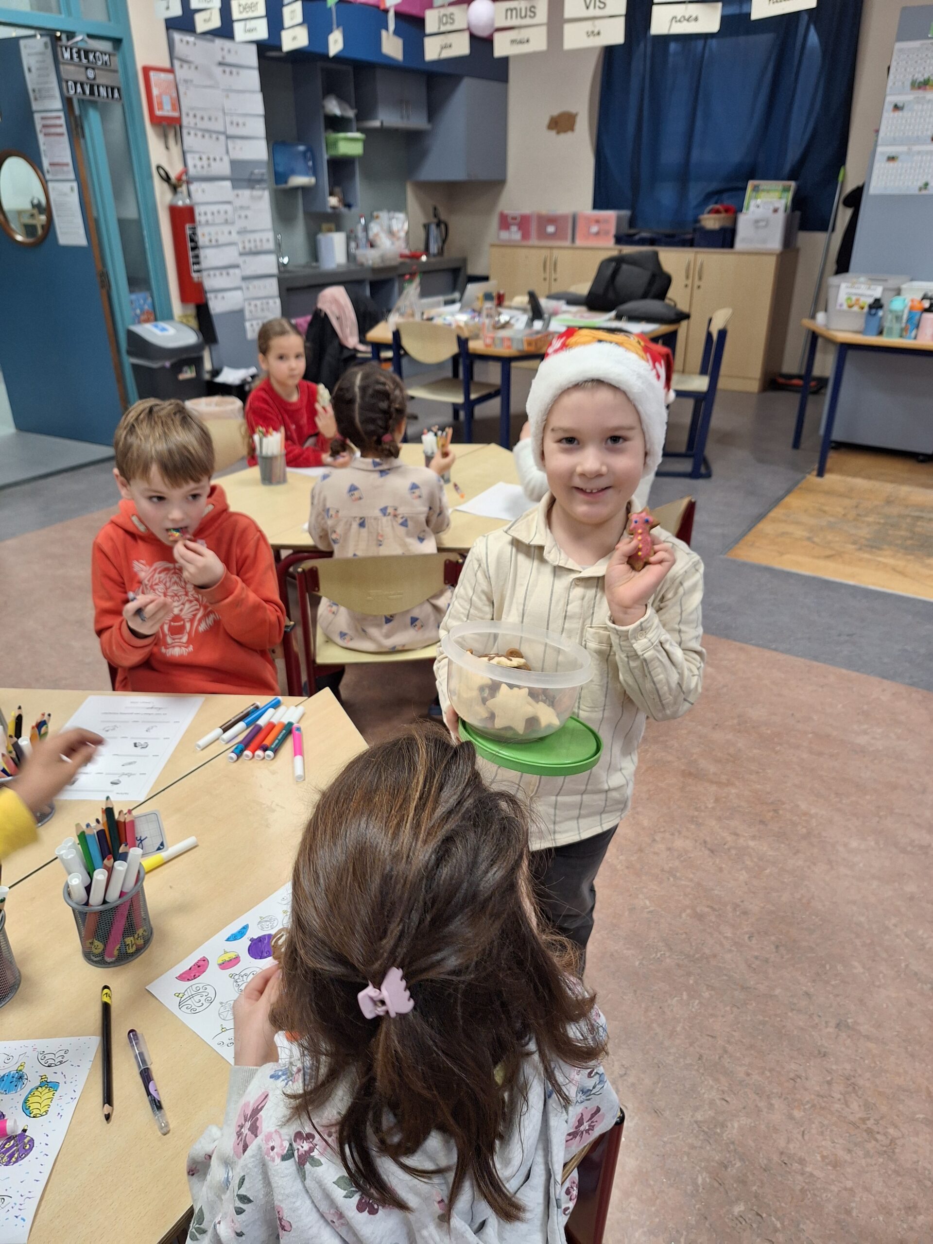 Ondertussen zijn we alweer heel flink aan het werk. Bij sommigen merkten we dat ze zelfs in de vakantie geoefend hadden voor lezen, schrijven en rekenen. Bij anderen zat het heel ver weg en was een grote herhaling absoluut nodig. We hebben ook al direct ons thema “tijd” buiten kunnen waarnemen. In de winter kan het inderdaad sneeuwen, ijzelen en koud zijn. Jammer genoeg, hebben we ook al meteen een zieke leerling. We hopen dat het snel weer beter gaat en dat het griepvirus onze klas niet bezoekt. We vliegen er weer stevig in tot aan de volgende vakantie. En die zal niet lang op zich laten wachten ! Maar ondertussen gaan we nog heel veel nieuwigheden bij leren.
